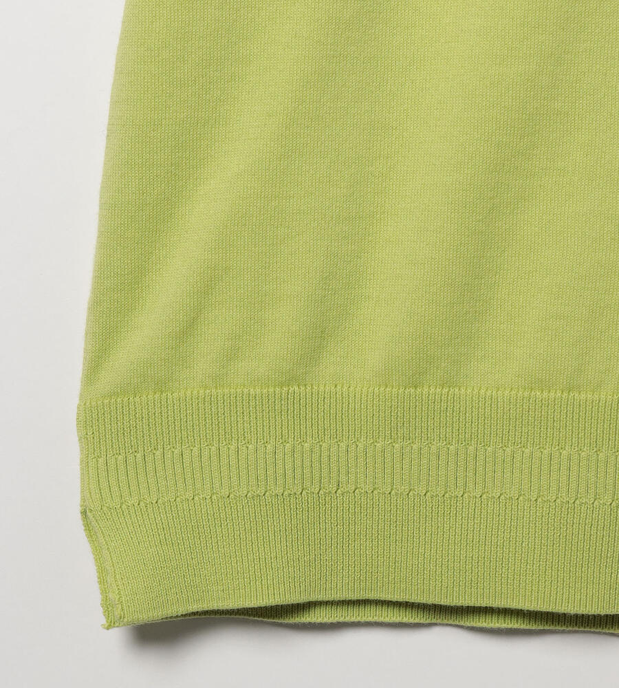 着こなしをフェミニン&エレガントに映し出す、ハイゲージのニットプルオーバー。さっぱりとしたコットンニットを使用しており、春先や秋口のスタイリングに活躍します。身体にすっきりと沿うフィット感のあるシルエット。1枚使いはもちろん、ジャケットなどのインナーとしても使えるアイテムです。