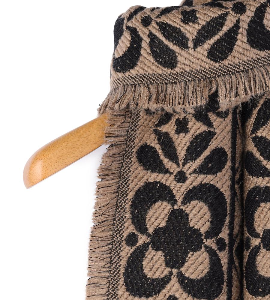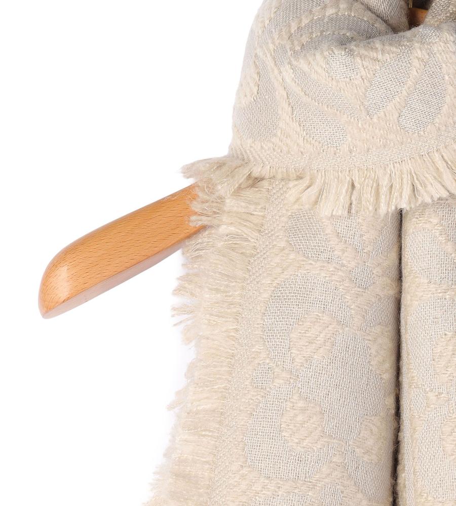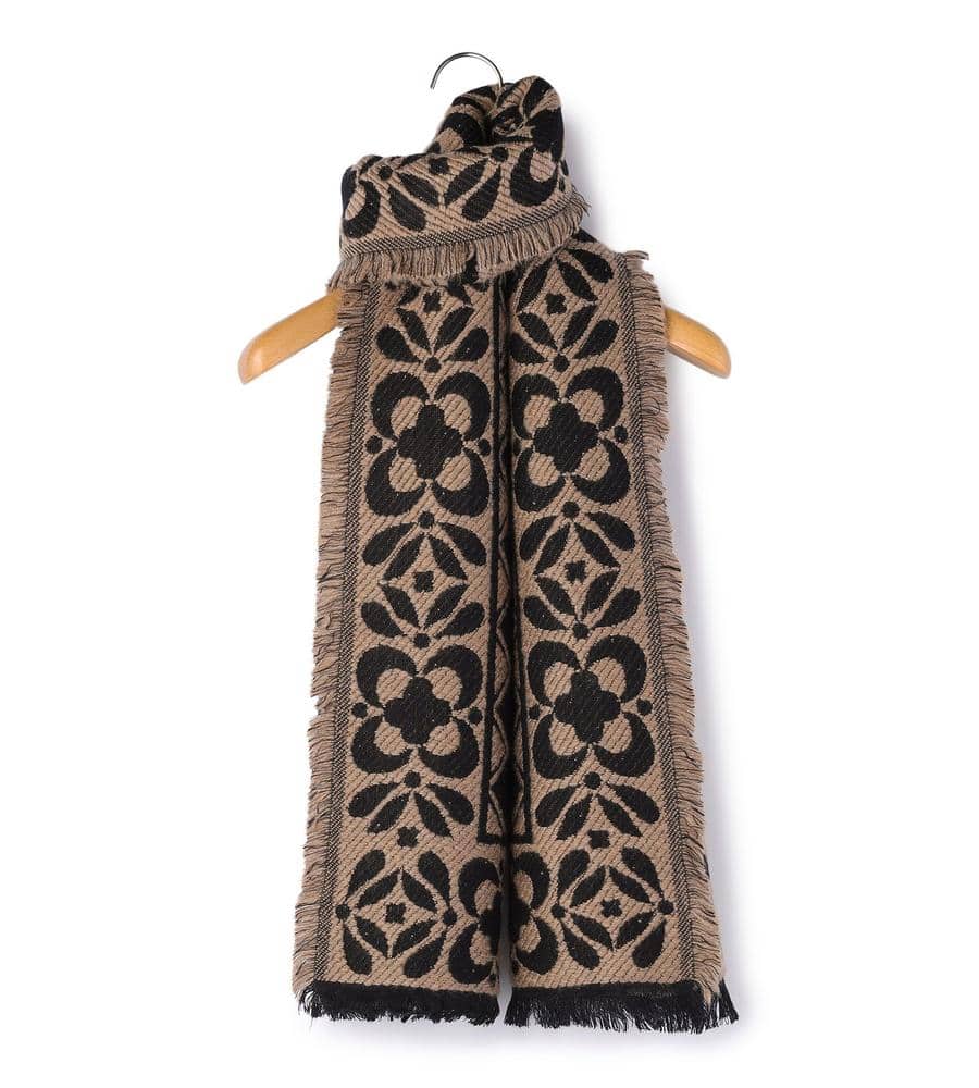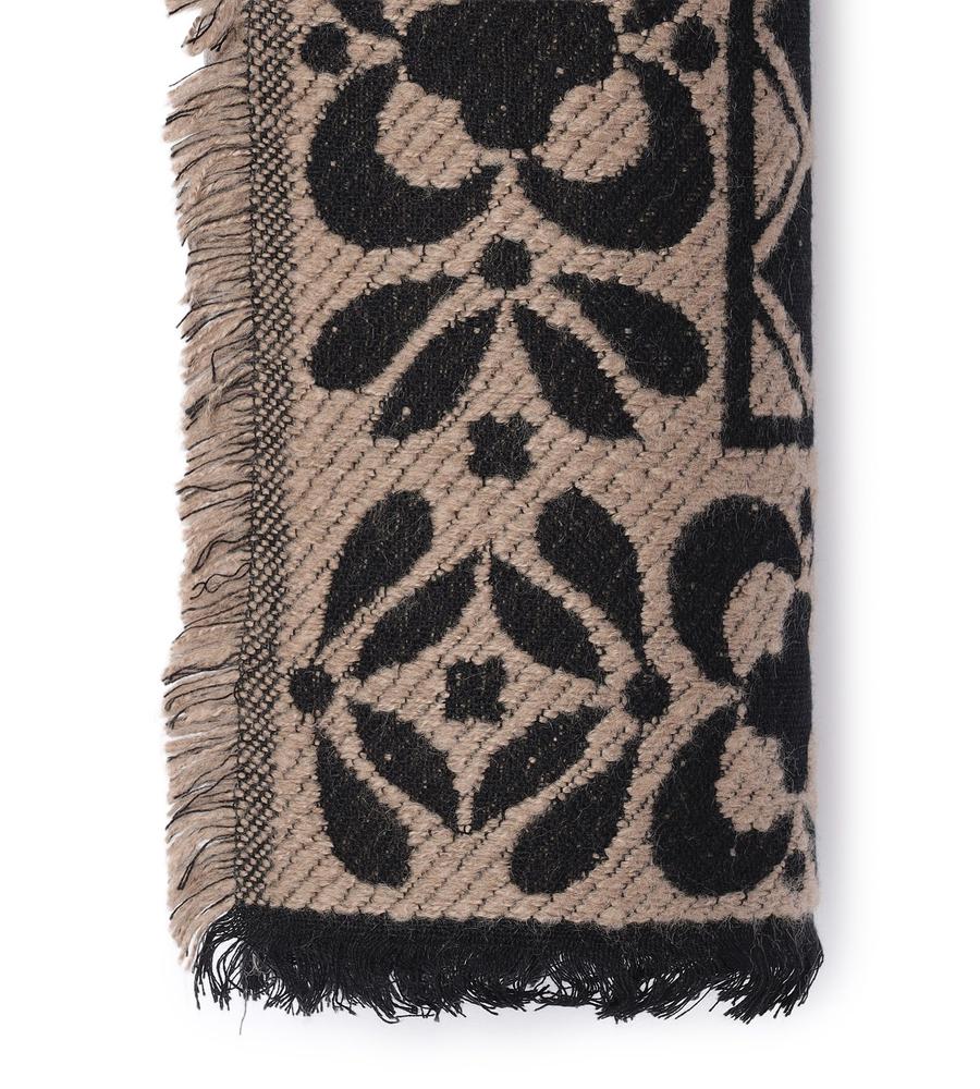エキゾチックな柄をジャカードで表現した、大判サイズのストールです。落ち着いたカラーリングで主張しすぎず、様々なスタイリングに合わせてお使いいただけるのがポイント。ビジネスからカジュアルまで幅広く活躍します。襟元のアクセントにはもちろん、肌寒い日の温度調節にも重宝するアクセサリーです。