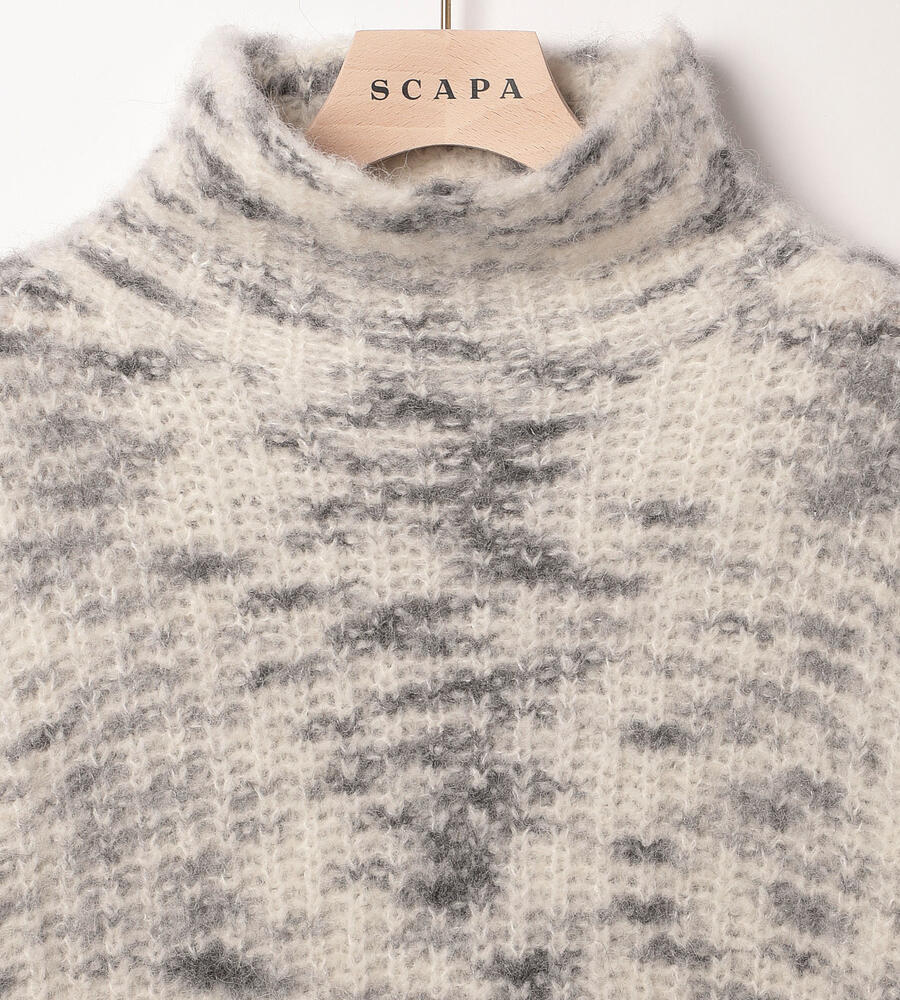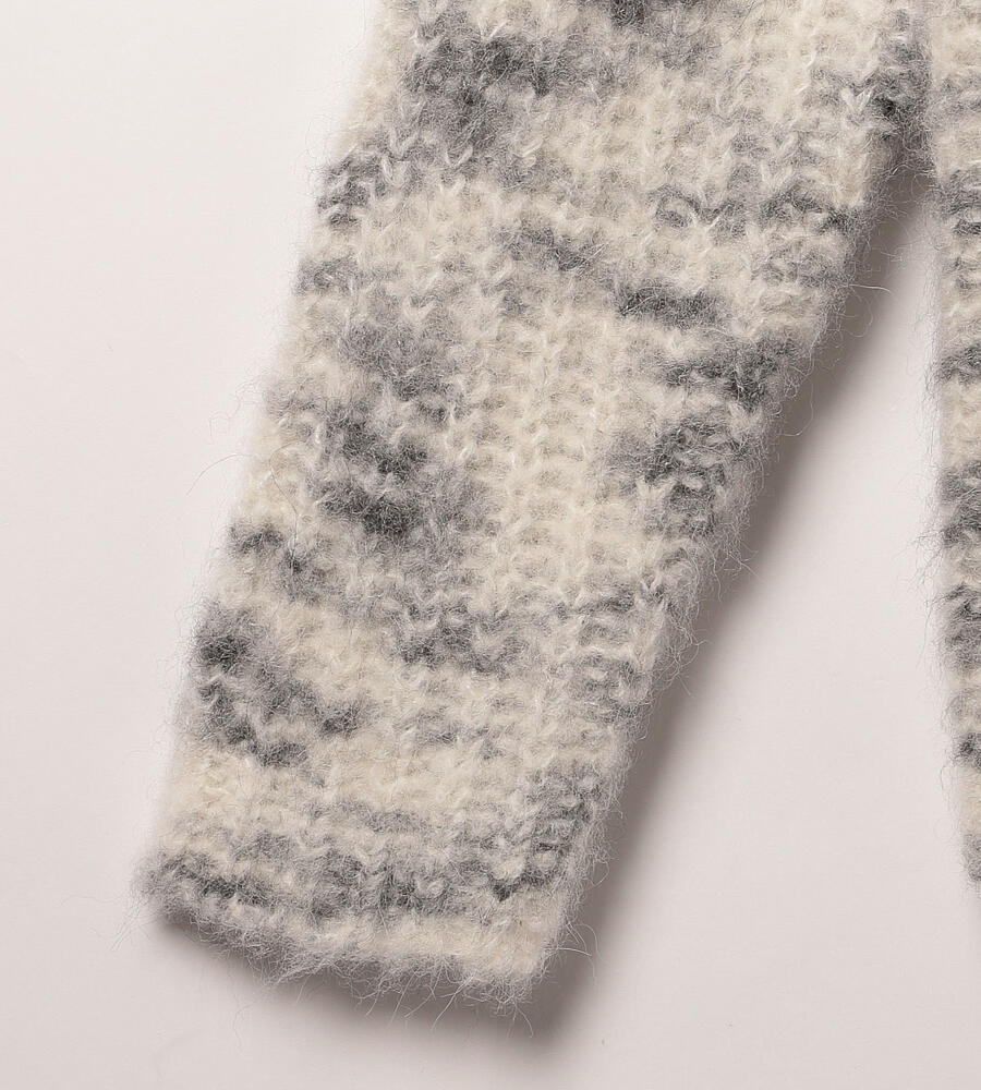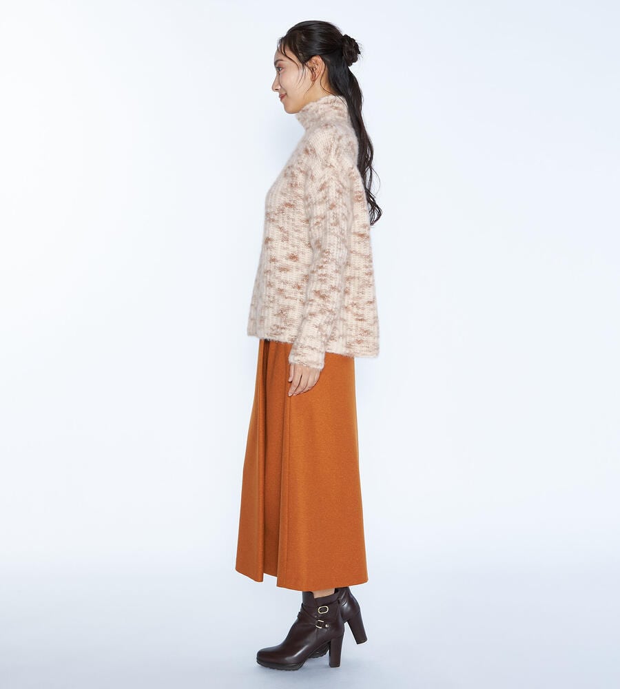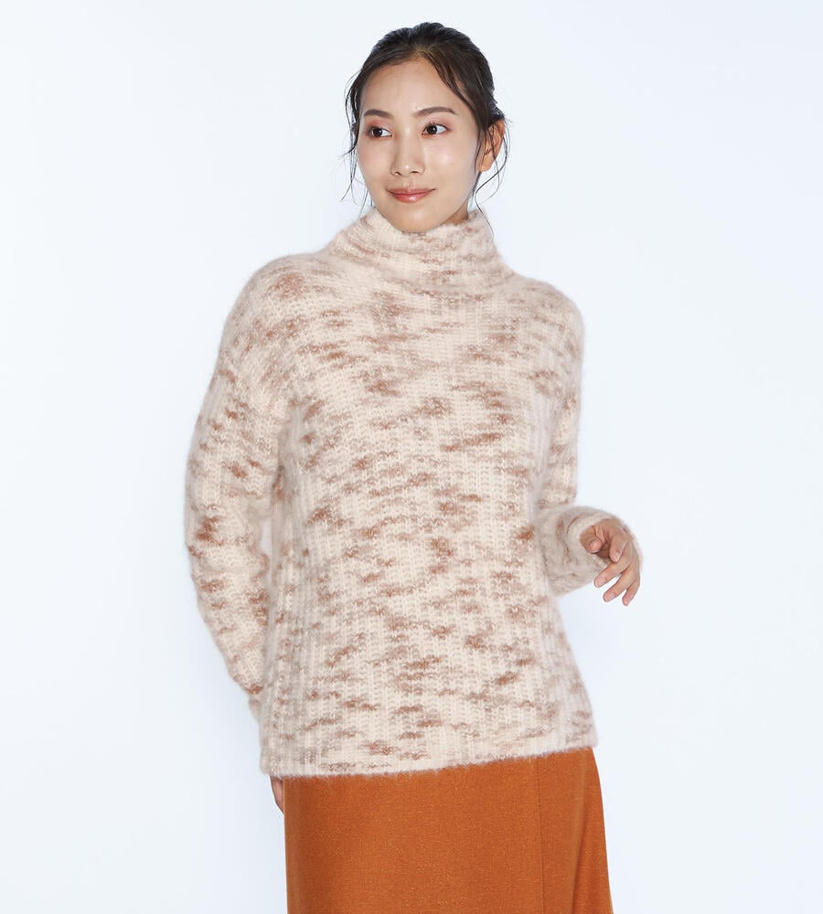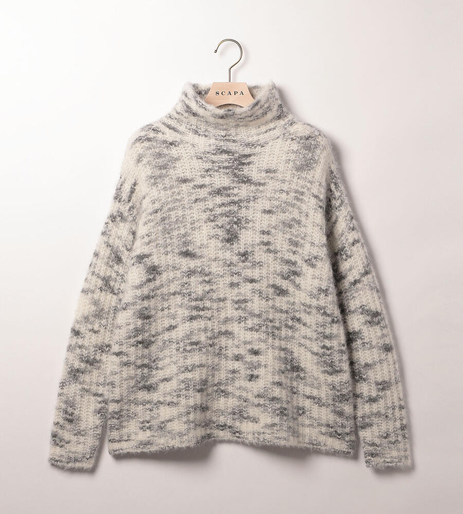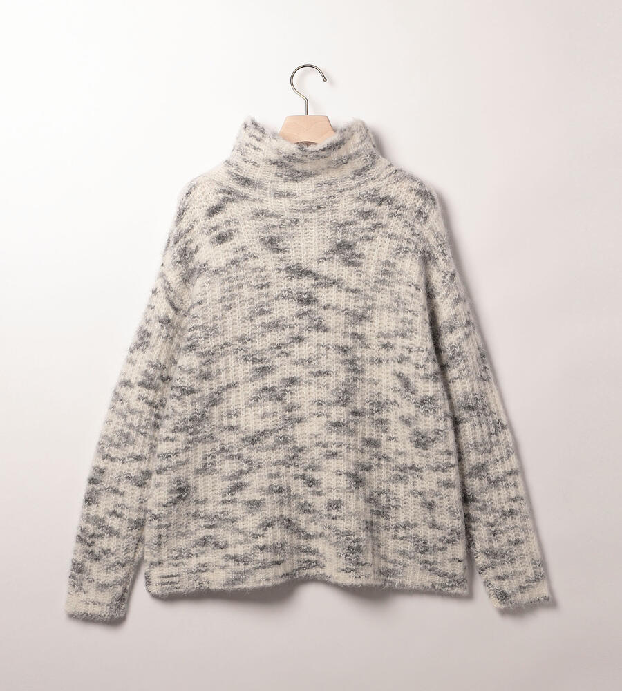 アルパカやウール、ナイロンなどを織り交ぜて、ふっくらとしたソフトな風合いに編み上げたニットトップス。メランジ調の柄使いで、着こなしをフェミニンかつ柔和な印象に映し出します。高さのあるスタンドカラーを採用。裾は絞らず広げることで、リラックス感のあるシルエットに仕上げているのも特徴です。合わせるボトムスを選ばず、主役級の冬コーデが楽しめます。