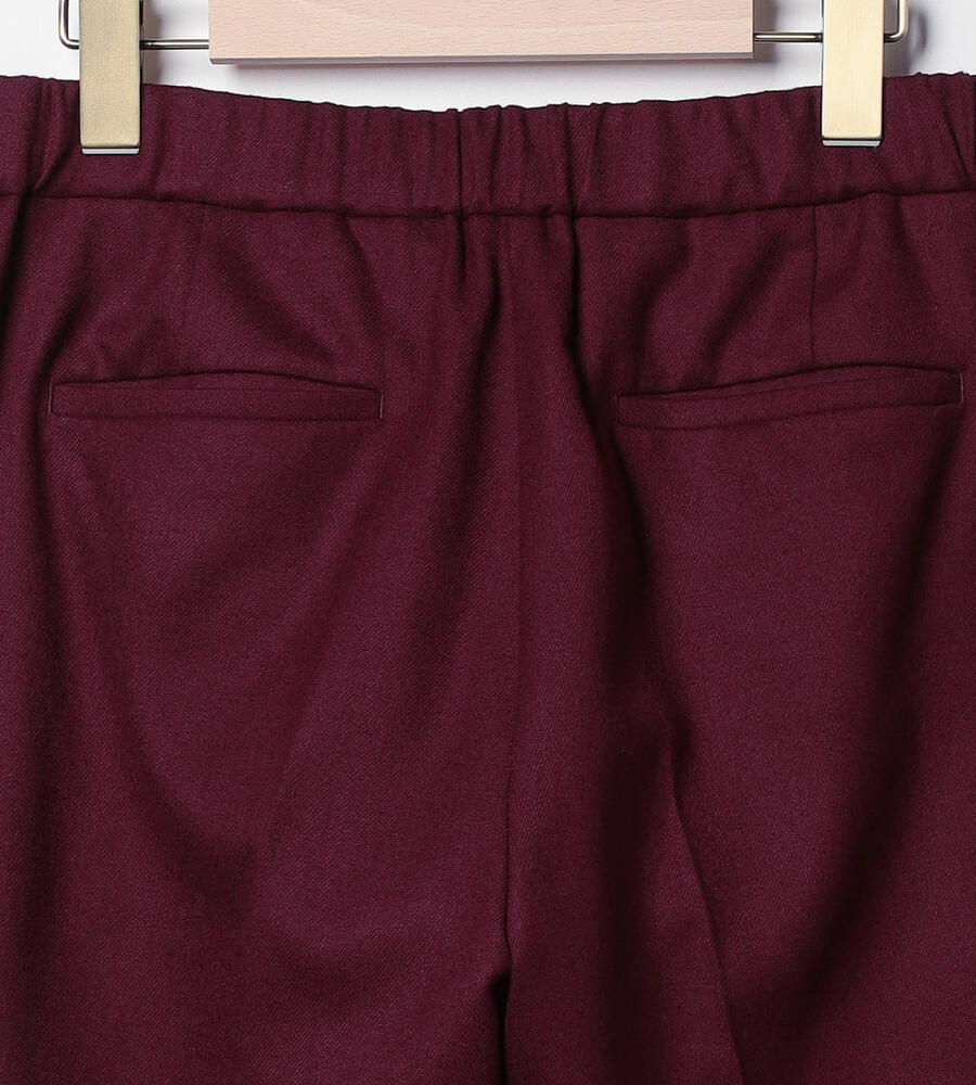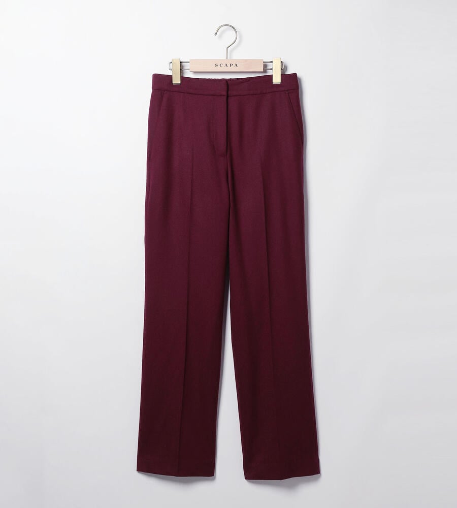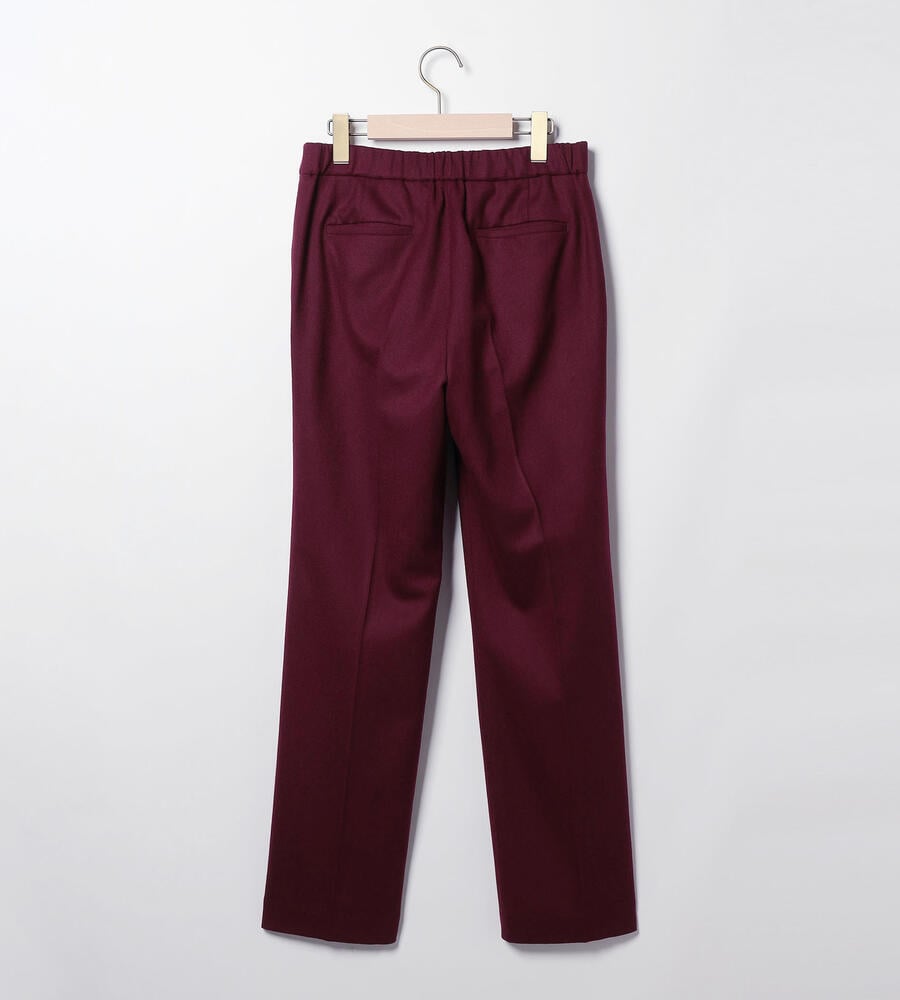 軽く、あたたかでソフトな肌触りが魅力のフラノウール生地で仕立てたストレートフィットのパンツ。センタープリーツ加工がエレガントなデザイン。ウエスト後ろはゴム仕様、身体の動きにフィットしストレスフリーな履き心地のストレッチ素材なのもうれしいポイント。スタイリッシュなコーディネートが決まるアイテムです。