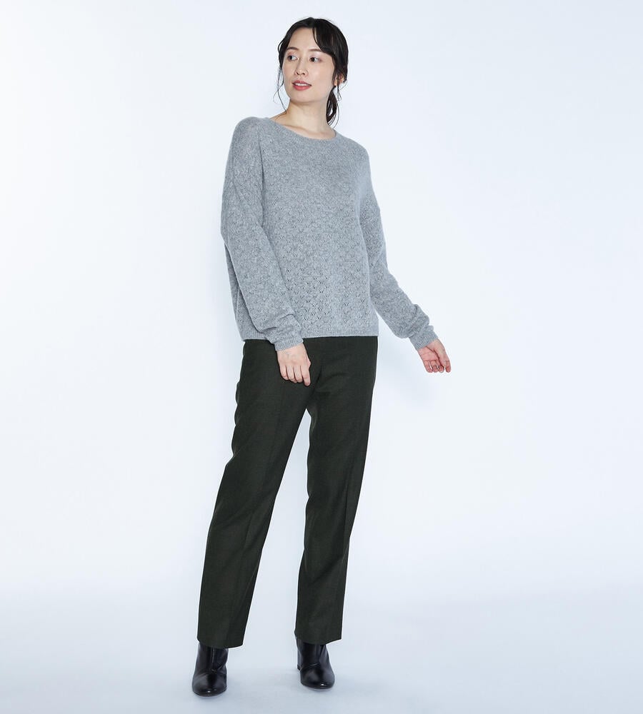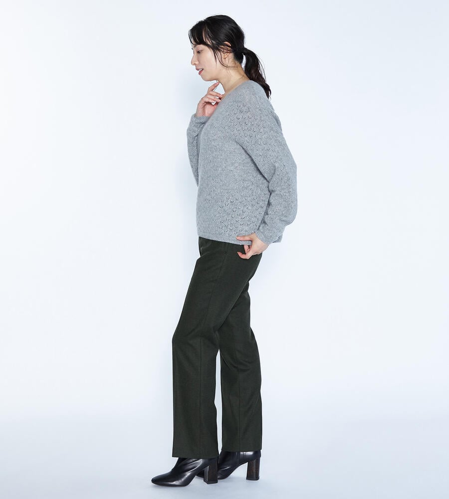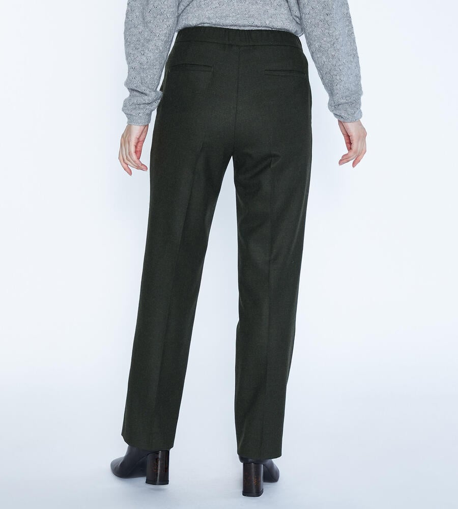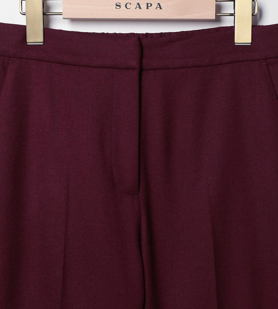 軽く、あたたかでソフトな肌触りが魅力のフラノウール生地で仕立てたストレートフィットのパンツ。センタープリーツ加工がエレガントなデザイン。ウエスト後ろはゴム仕様、身体の動きにフィットしストレスフリーな履き心地のストレッチ素材なのもうれしいポイント。スタイリッシュなコーディネートが決まるアイテムです。