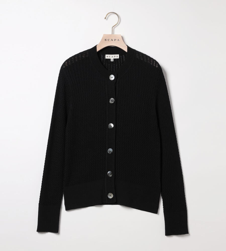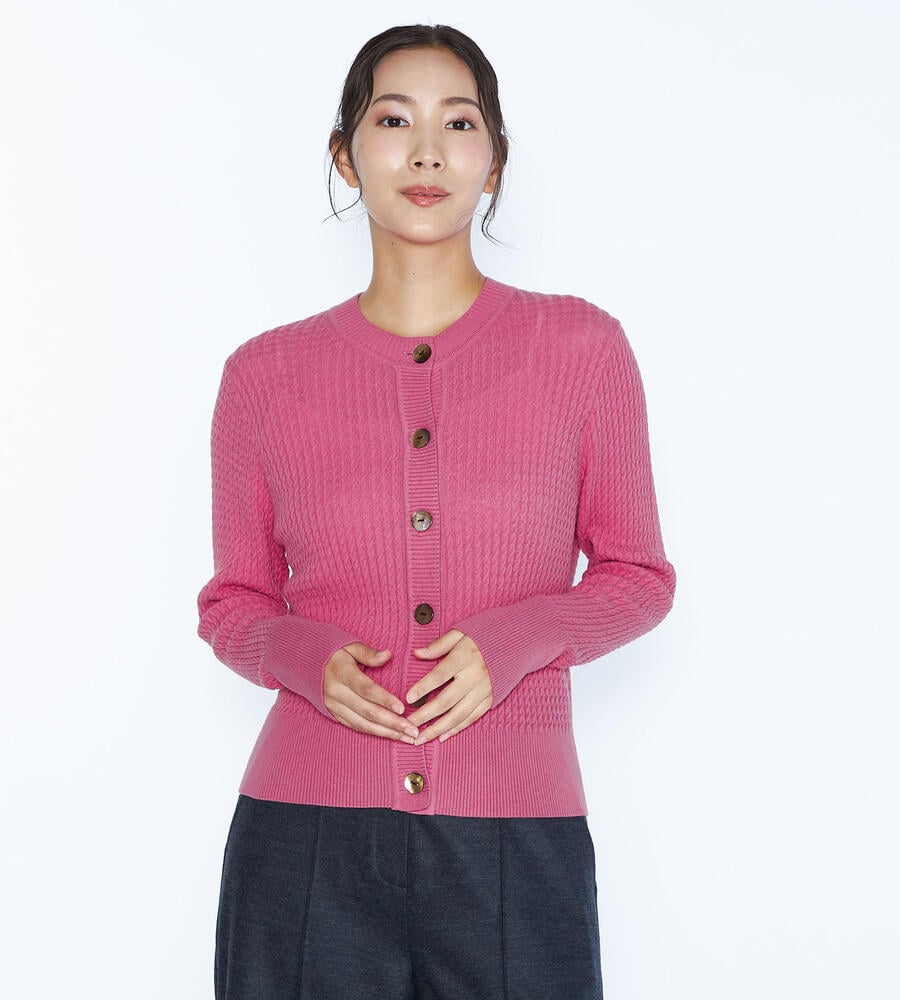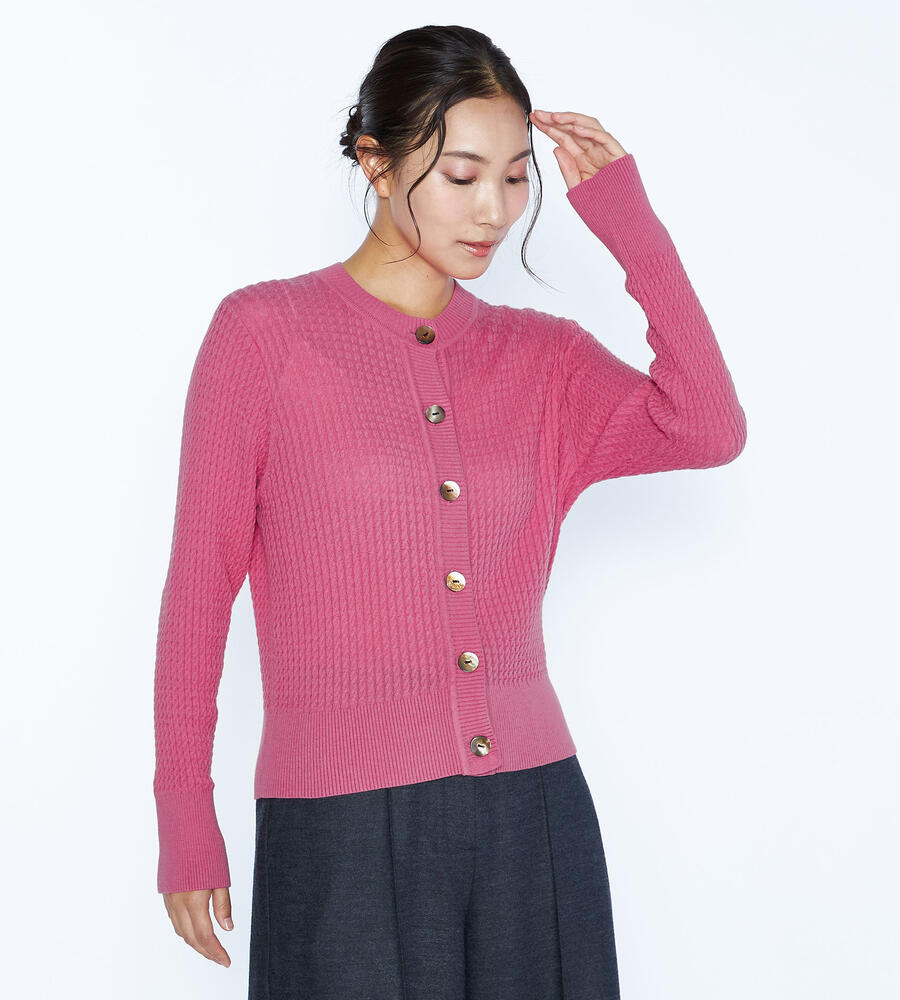 ふっくらとした編み地で表情豊かに仕上げたスノストレッチニットカーディガン。角度によって色の見え方が変わるシェルボタンが華やかさを添えています。程よいフィット感のあるシルエットは上半身をすっきりと見せ、裾のワイドリブ切り替えが引き締まった印象に。