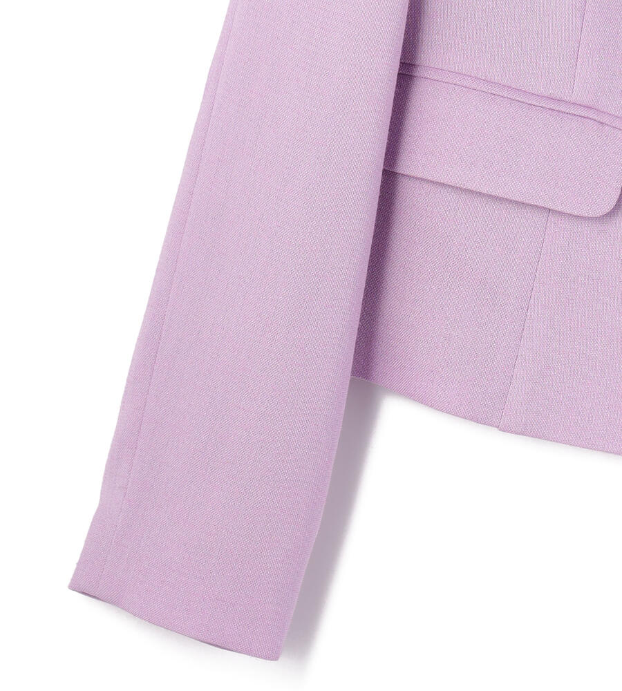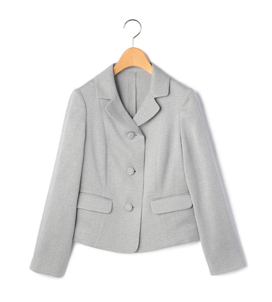 しなやかで適度に張り感のあるオックス生地で仕立てたジャケット。コロンとした愛らしいくるみボタン、フラップ付きポケットがデザインアクセント。フレアに広がる裾とウエストのカーブされたシルエットがフェミニンなデザインポイント。いつもの着こなしにプラスして、エレガントなコーディネートが完成するアイテムです。