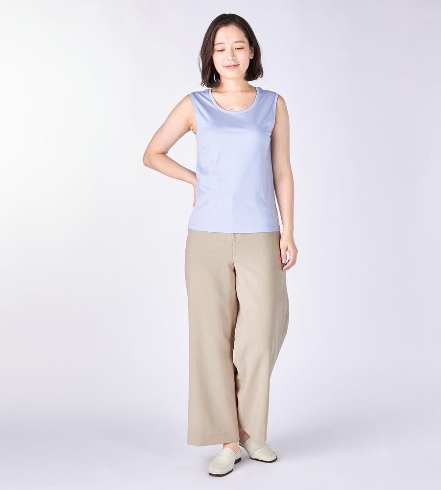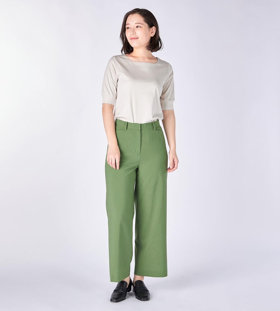 程よいシャリ感のあるさらっとドライタッチな生地が春夏シーズンに最適なさわやかなムードのパンツ。引き続きトレンドのワイド幅のシルエット。ウエスト後ろはゴム仕様で履き心地快適なのもうれしいポイント。シンプルなデザインでトップスを選ばず、デイリーからお出かけまで幅広く活躍するアイテムです。