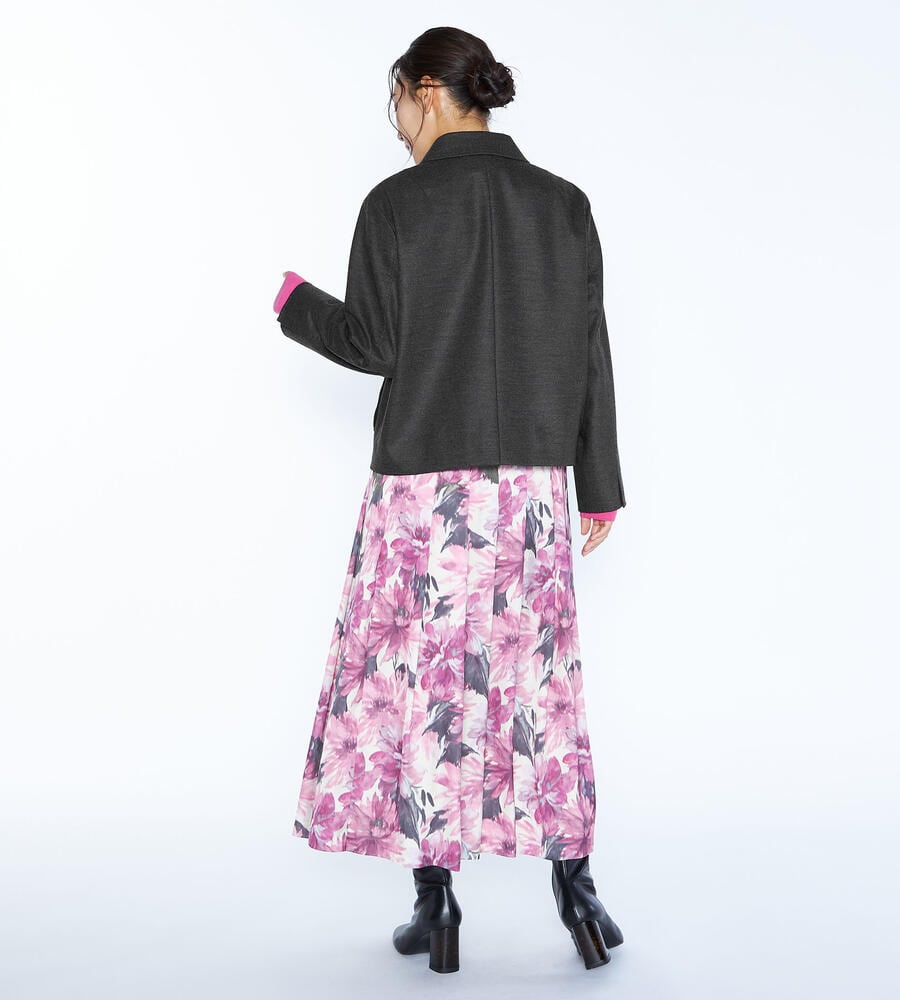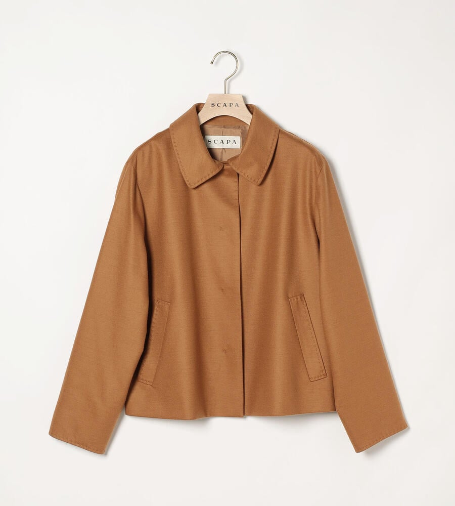 程よい光沢感のある毛とナイロンのブレンド素材で仕立てた衿つきジャケット。フロントは表から見えないスナップボタン仕様ですっきりとしたルックスに仕上げています。衿や袖口にあしらったステッチワークがさりげないポイントに。さらりと羽織れるライトなアウターは季節の変わり目から活躍します。