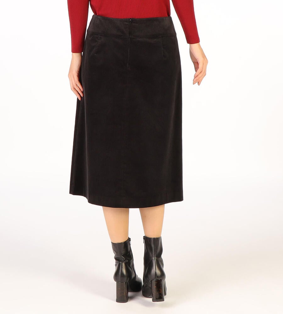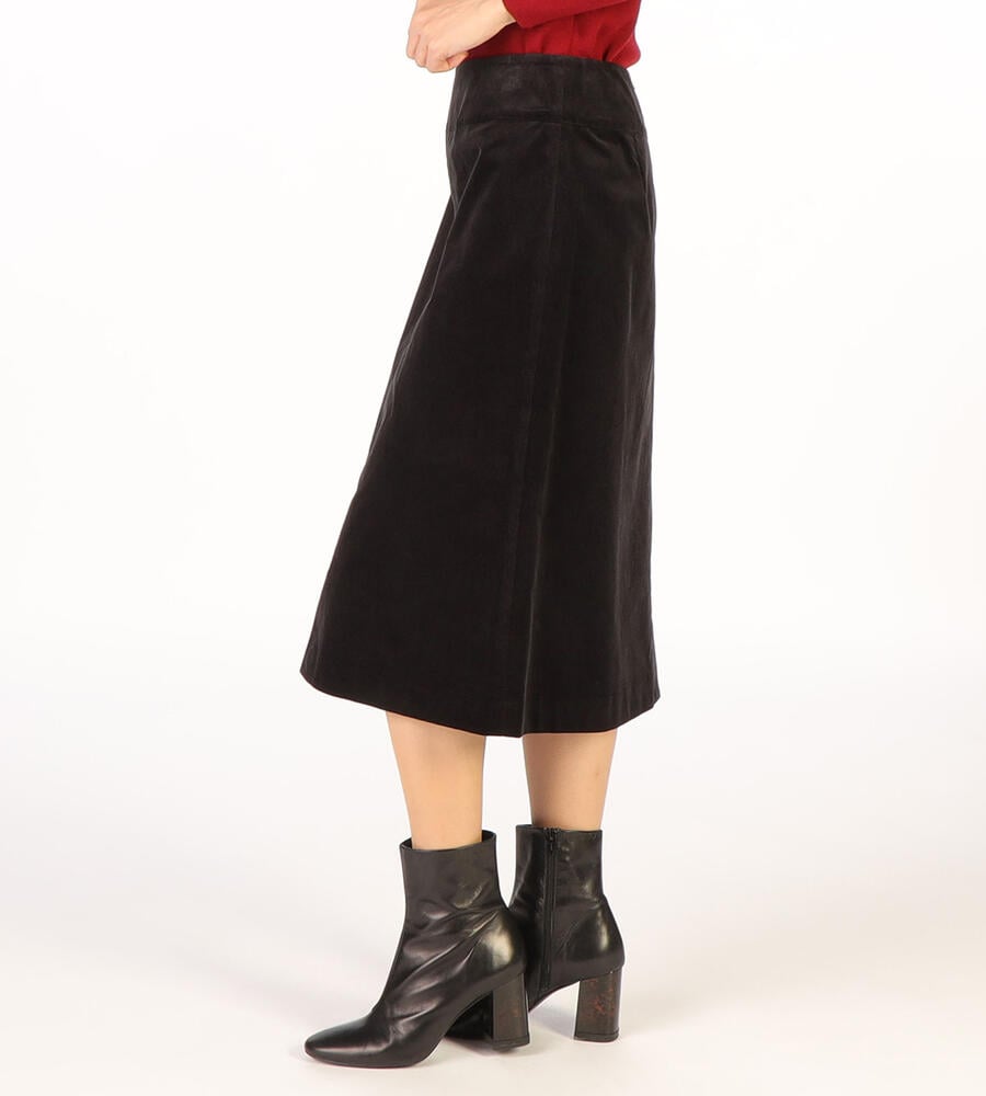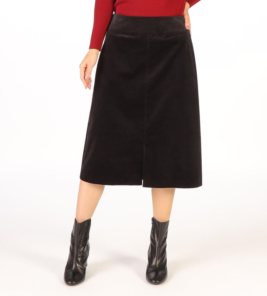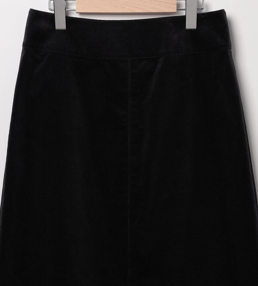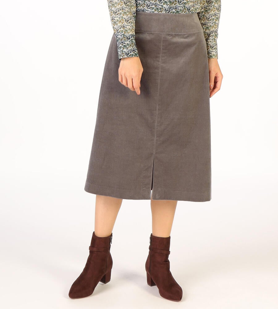 あたたかでシーズナルなムードを演出する、コーデュロイ生地で仕立てたスカート。ふくらはぎ中央までのミモレ丈のレディな丈感。フロントスリットがアクセントのシンプルでミニマルなデザインは、トレンドに左右されず長く愛用できる一枚。トップスを選ばず着こなせる汎用性抜群のアイテムです。