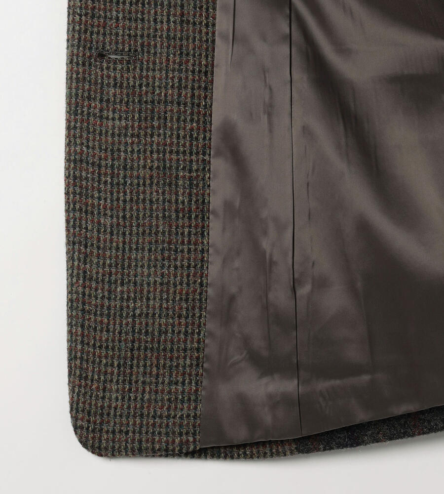 様々な柄を組み合わせたデザインが目を惹くハリスパッチワークコート。マニッシュな雰囲気を纏えるテーラードラペル、左右にフラップポケットを配置。着丈を長めに仕上げることでコーディネートバランスが取りやすく、パンツからワンピースまで幅広いスタイルにフィットします。