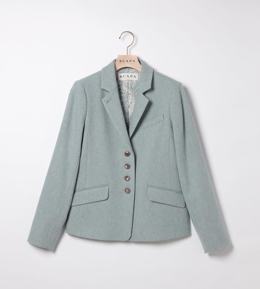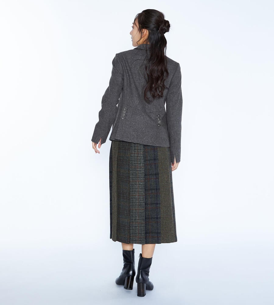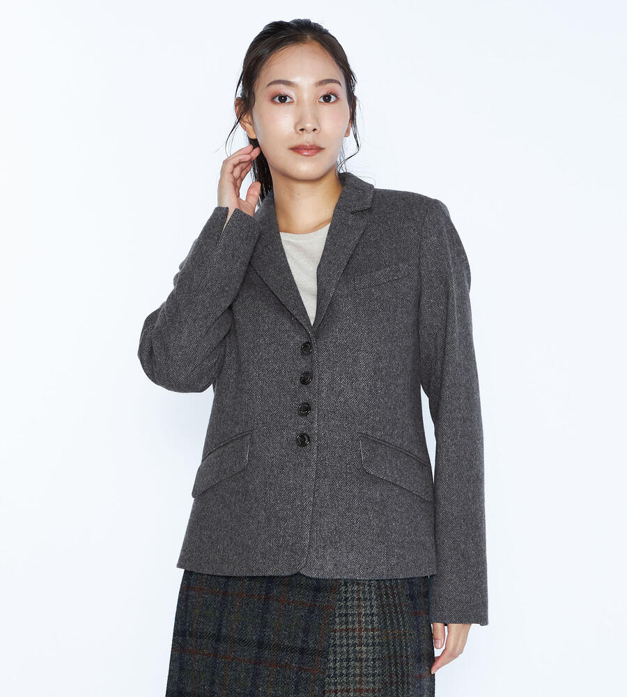 クラシックなムード漂うブリリアントツイードジャケット。左右にはフラップポケットを配置し、フロントの4つボタンが引き締まった表情に。バックスタイルを存在感溢れるデザインに仕上げており、ジャケット主役のスタイリングがおすすめ。裏布にはペイズリープリントを採用し華やかさを添えています。
