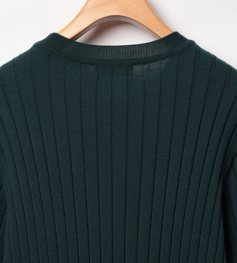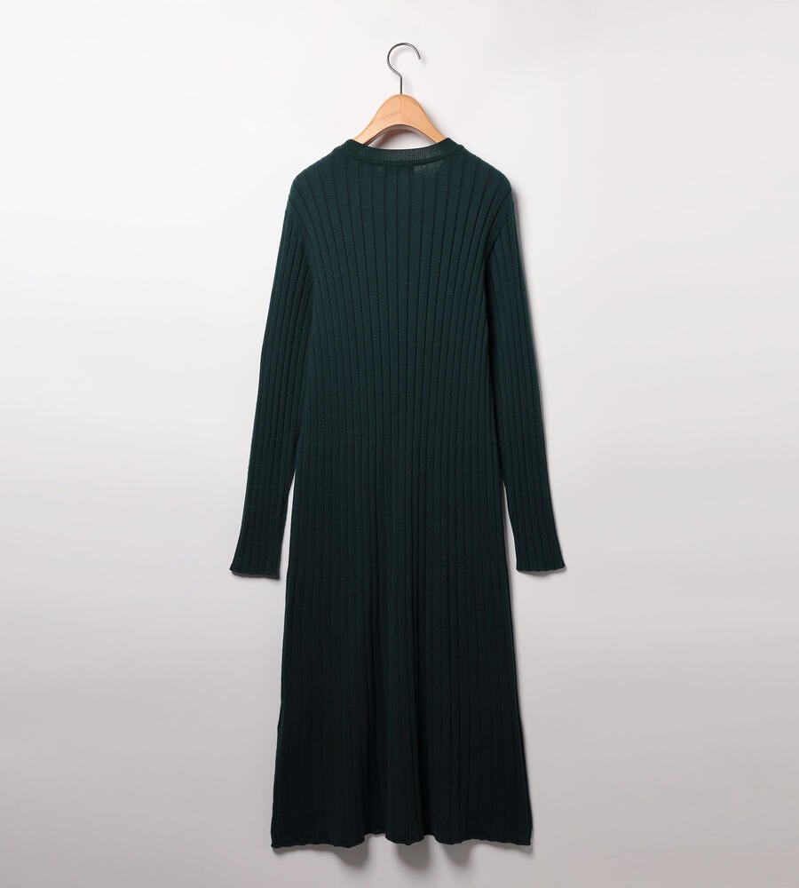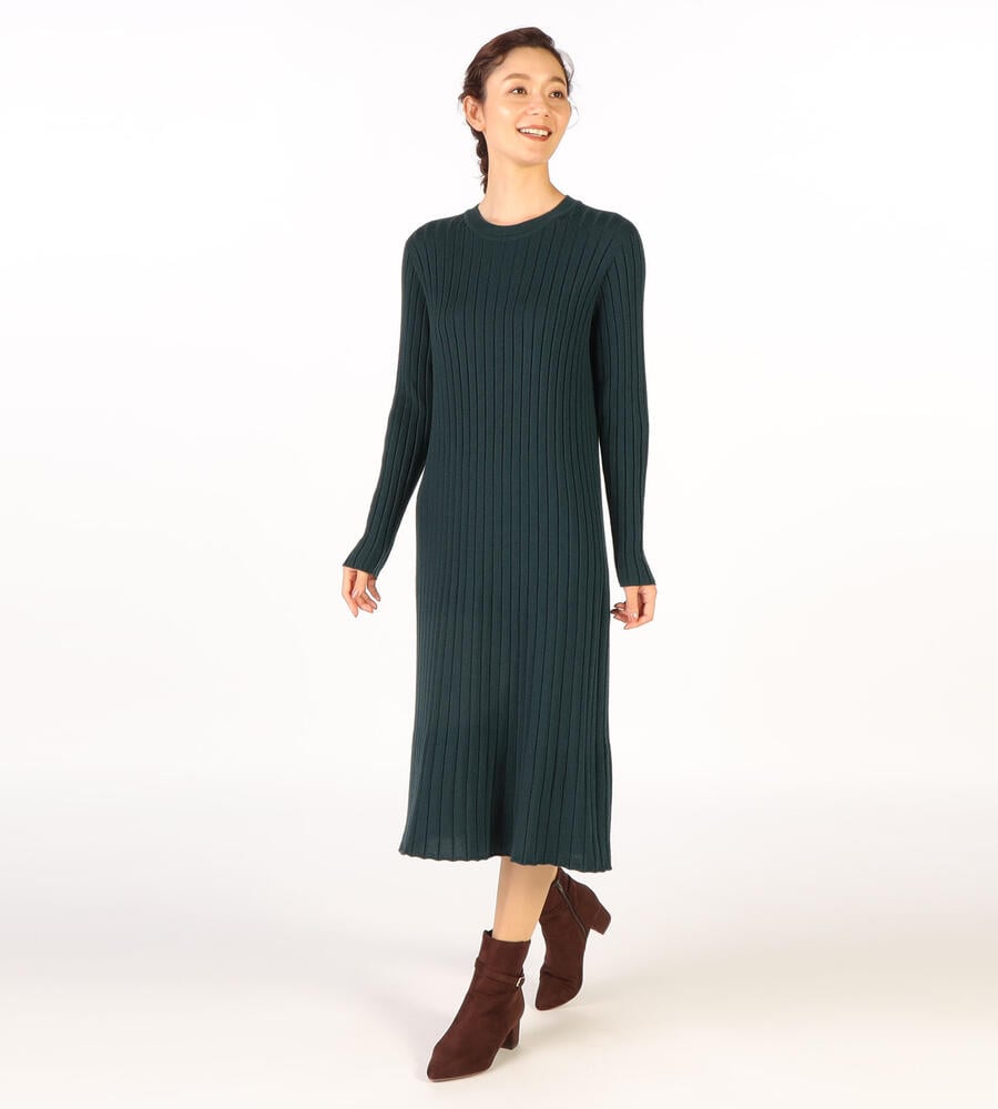 100%ウール素材で仕立てた、秋冬シーズンにぴったりな暖かな肌触りの長袖ロング丈ワンピース。引き続きトレンドのリブ編みで、適度に身体にフィットし、すっきりとした縦ラインのシルエットで着こなせます。少しフレアな裾がフェミになムード。一枚でスタイリッシュな着こなしが完成する便利なアイテムです。