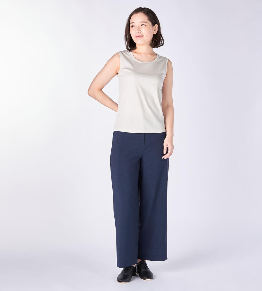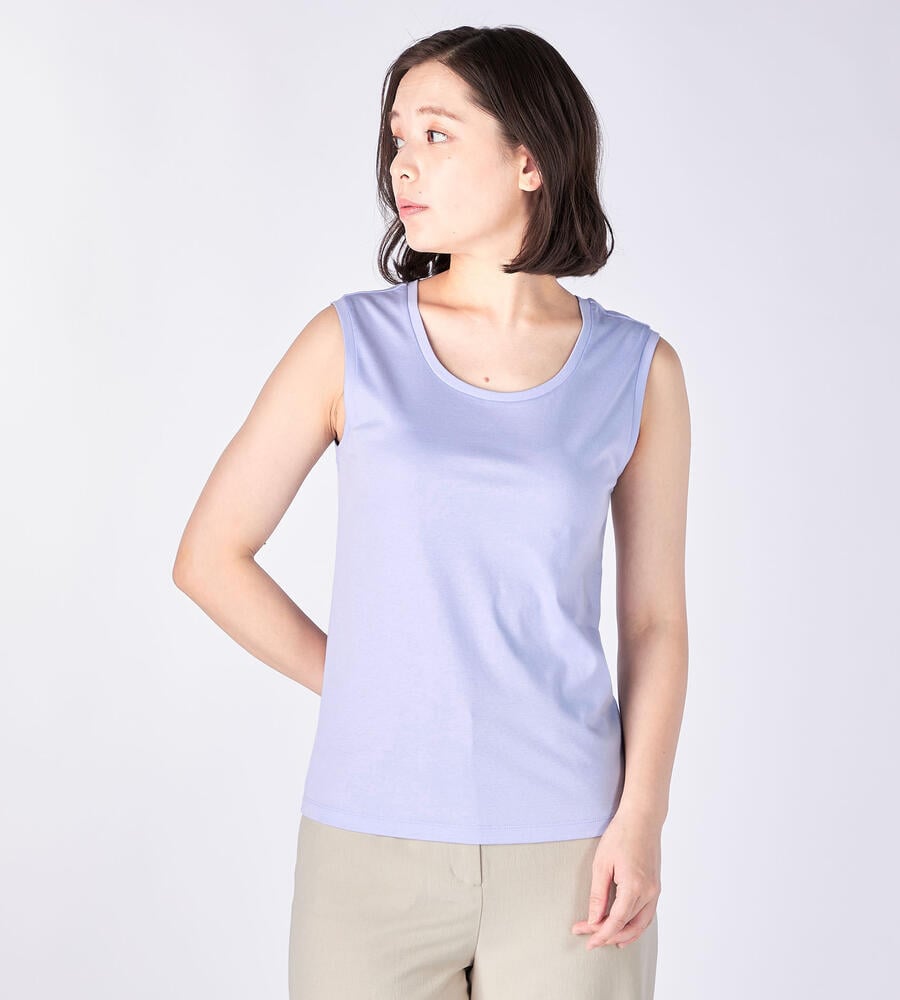 スムース生地で仕立てた肌触りなめらかなノースリーブカットソー。シンプルなデザインで、ボトムを選ばず着こなせて様々なスタイルにマッチ。露出度が高くない着こなし易いOネックで、一枚で着るのはもちろん、重ね着コーディネートにも最適。毎日のコーディネートで活躍する汎用性抜群のアイテムです。