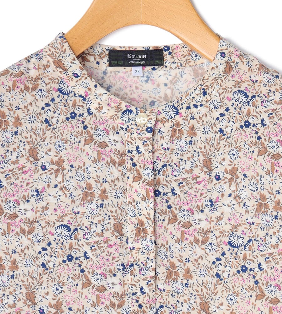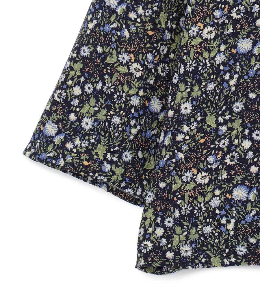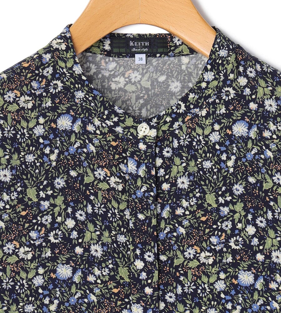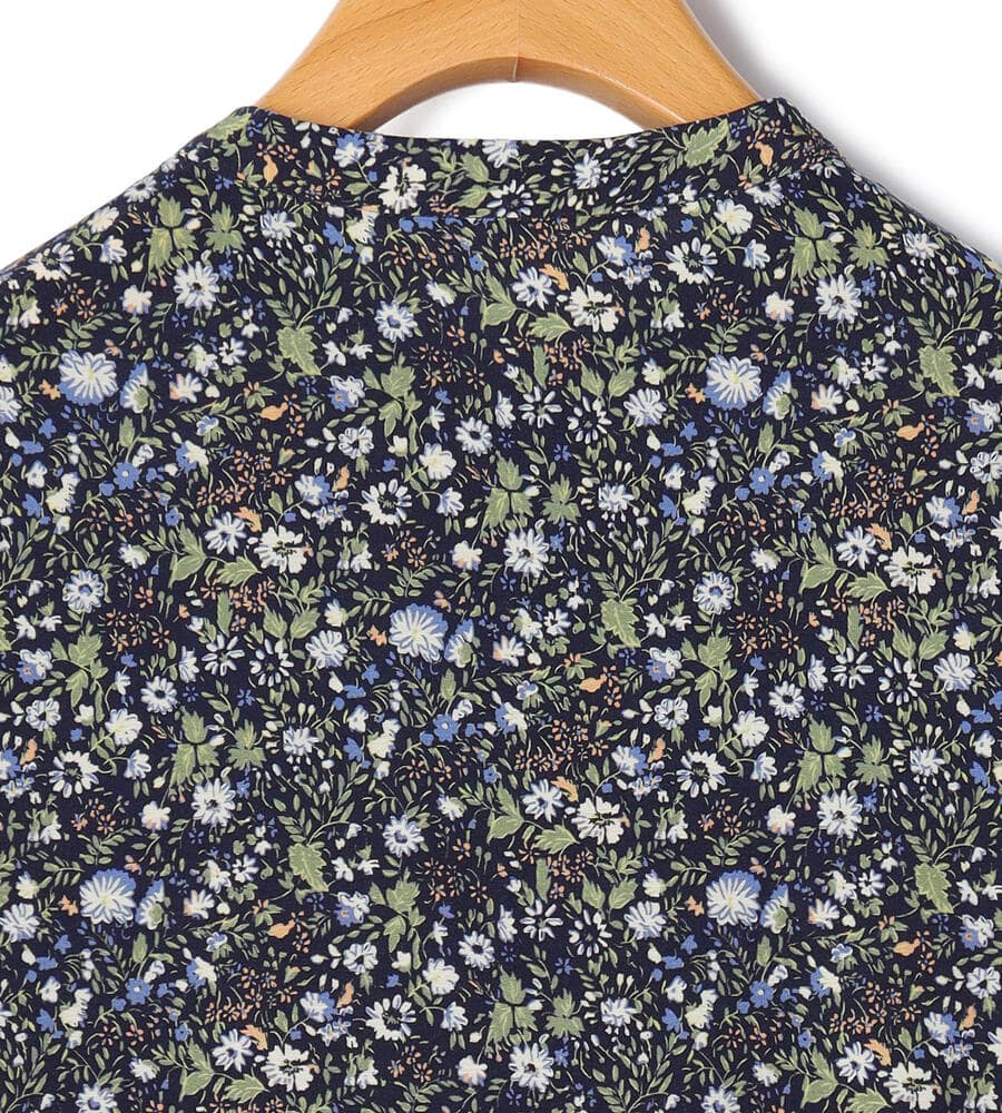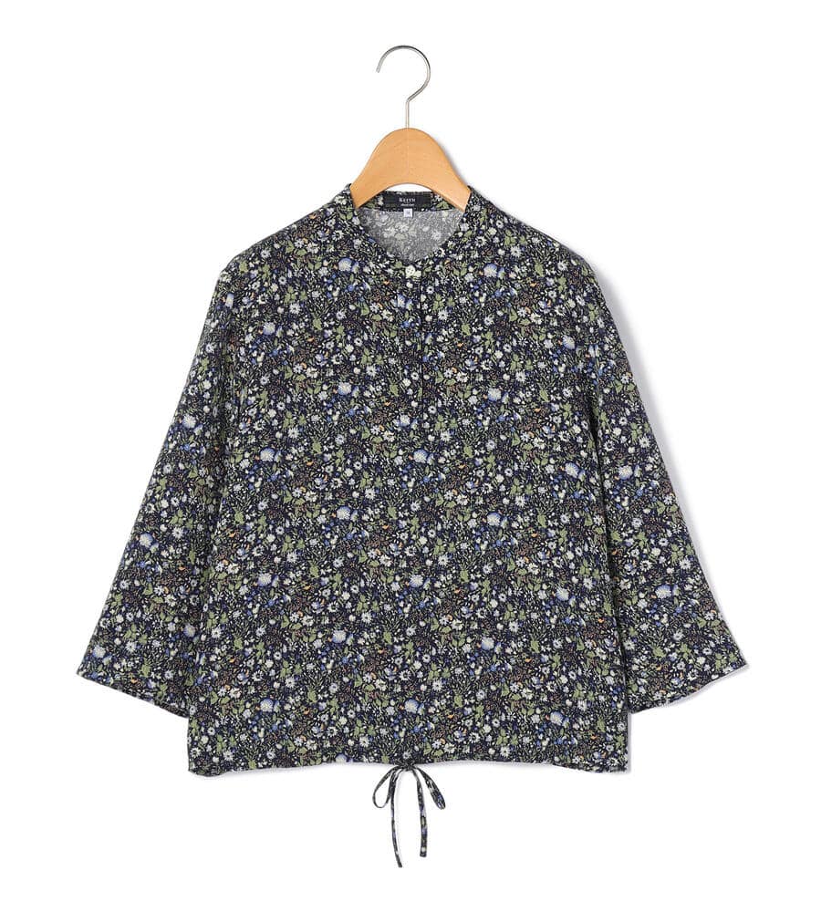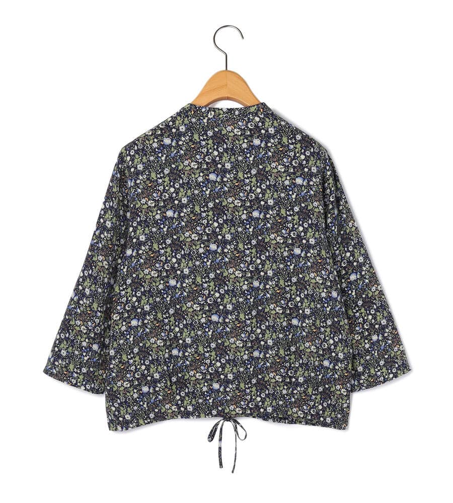 キュプラ×レーヨンのジャージー素材を用いたブラウス。花咲く庭園のような華やかさを持つ小花柄が目を引くアイテムです。裾をドローコードで絞れるタイプで、バランスの取れた着こなしを演出。袖丈も長すぎないため、すっきりとしたスタイリングを楽しめます。小花柄の甘さを程よく抑えるバンドカラーもポイント。