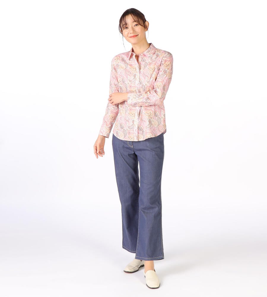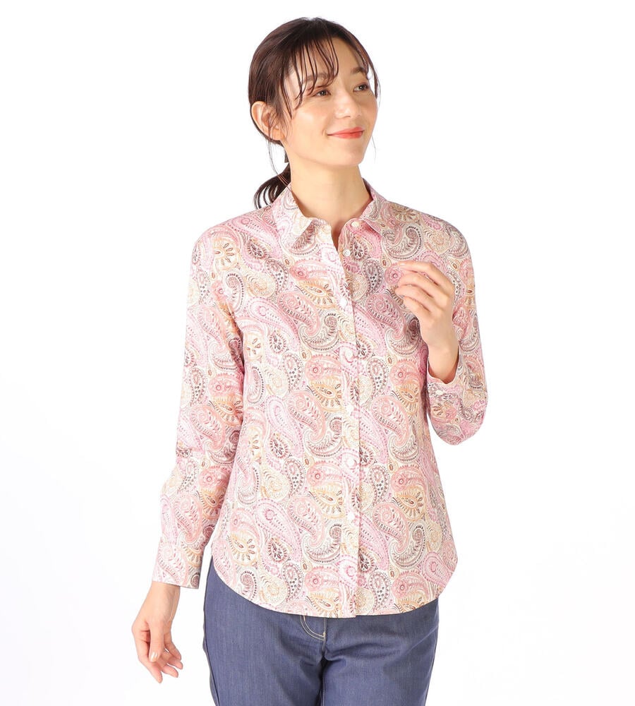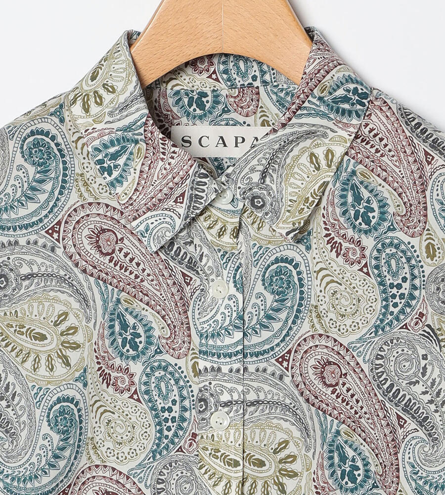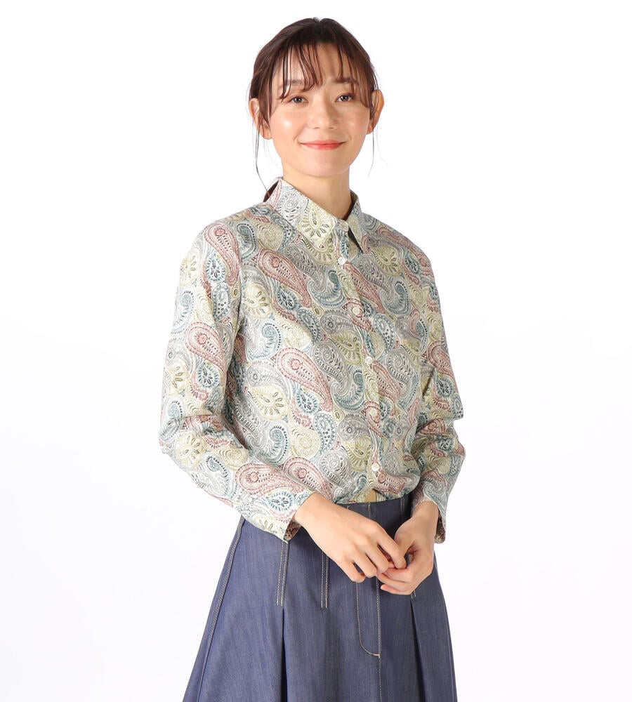 ロンドンの老舗、リバティ社が手掛けるテキスタイルブランドの華やかなシャツブラウス。サラサのペイズリー柄がおしゃれなデザイン。スタイリングに馴染みやすい落ち着いたトーンのカラーで、様々なボトムとマッチ。お手持ちのボトムと合わせてスタイリッシュなコーディネートが実現するアイテムです。