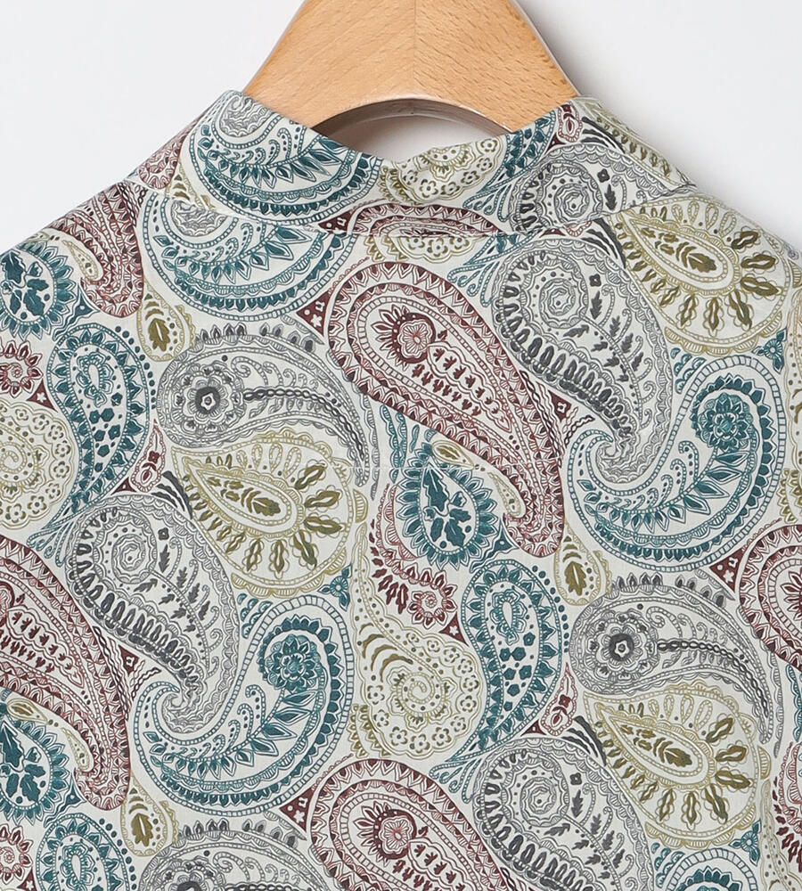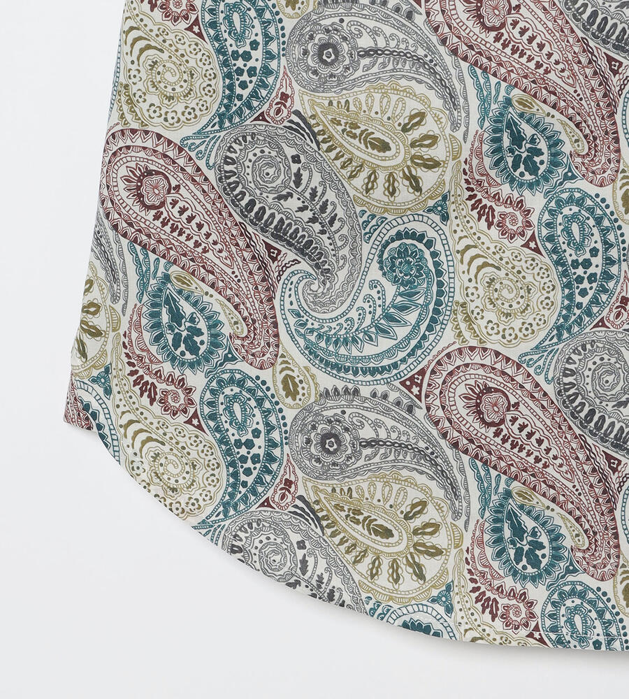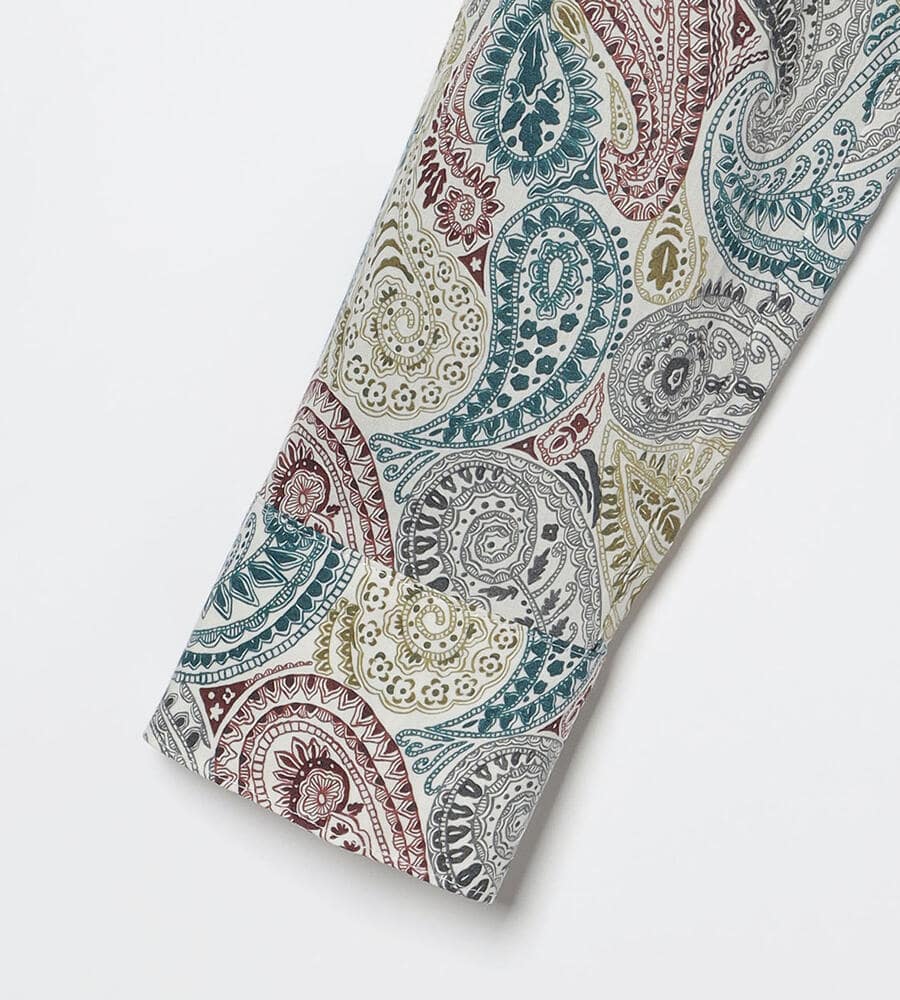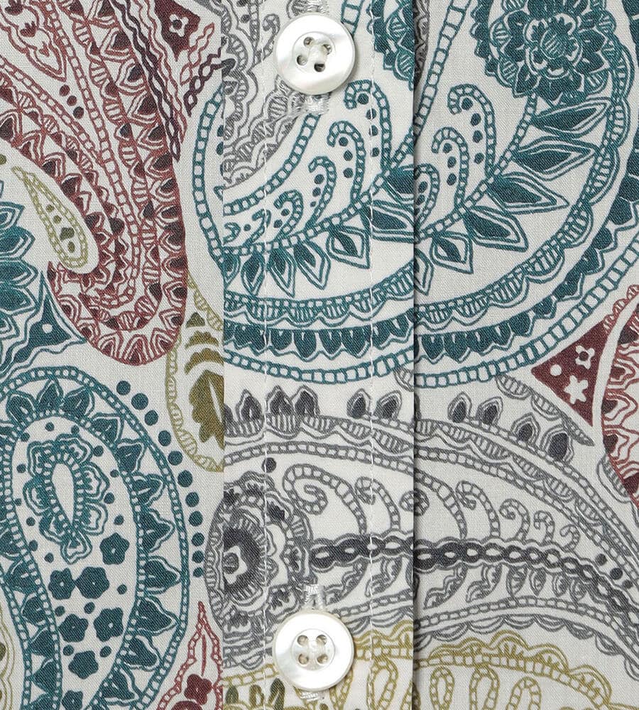 ロンドンの老舗、リバティ社が手掛けるテキスタイルブランドの華やかなシャツブラウス。サラサのペイズリー柄がおしゃれなデザイン。スタイリングに馴染みやすい落ち着いたトーンのカラーで、様々なボトムとマッチ。お手持ちのボトムと合わせてスタイリッシュなコーディネートが実現するアイテムです。