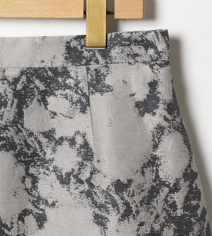 肌触りのよい麻混生地を使用し、緻密なパターンメイキングでデザインしたジャカード柄のスカート。裾に向かって広がりをもたせた端正なAラインシルエットで爽やかな雰囲気に。バックジップ仕様とし、着脱のしやすさにも配慮しました。これからの季節らしい洗練されたフェミニンルックが完成するアイテムです。
