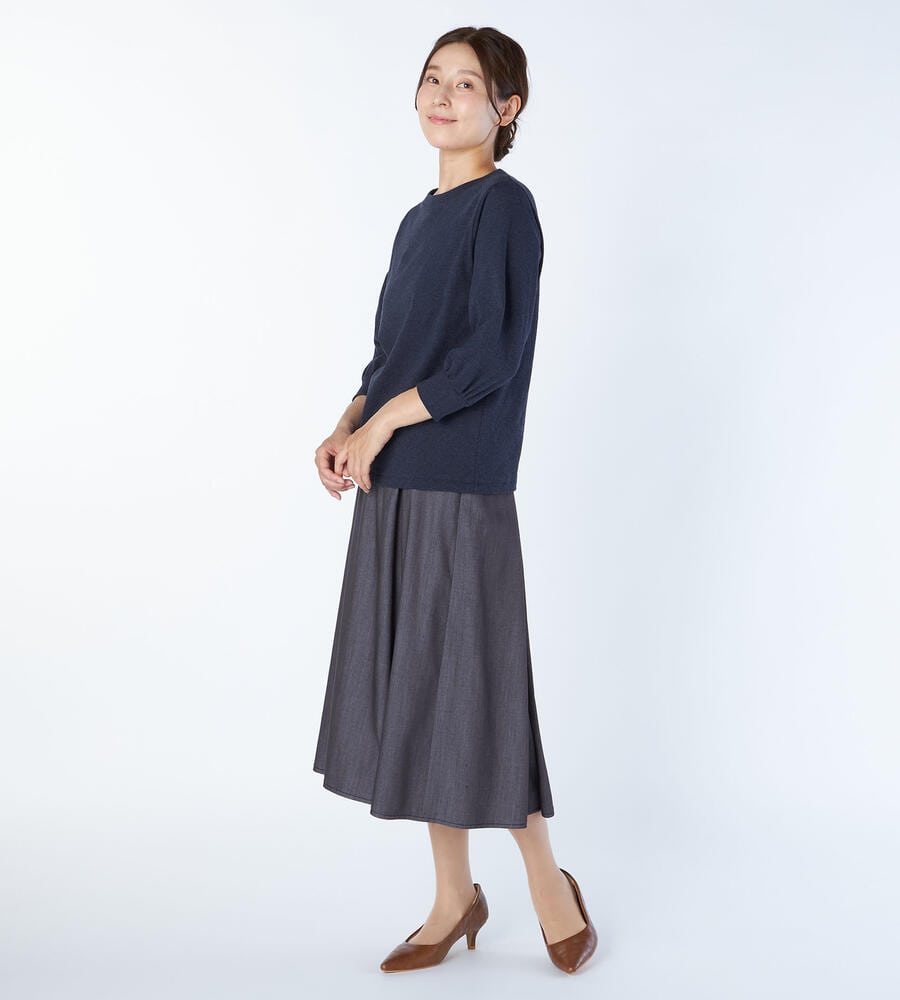 着心地の良いジャージー生地で仕立てた7分袖カットソー。やわらかな肌触りも魅力です。少しボリュームを出した今年らしいデザインの袖に、袖先のリブがメリハリあるデザインアクセント。シンプルなデザインで様々なスタイルのボトムにマッチ。毎日のコーディネートで活躍する使い勝手の良いアイテムです。