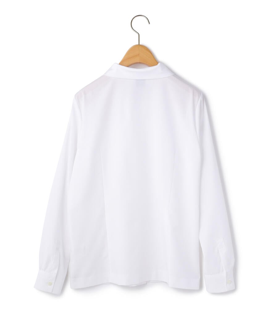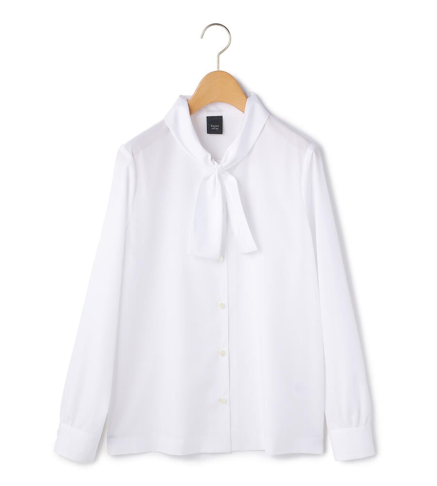 首もとのネックタイがワンポイントになったブラウス。シンプルながらも凛とした雰囲気を醸し出す洗練されたデザイン。ジャケットやカーディガンなどの羽織りと合わせるのはもちろん、ニットベストやトップスとのレイヤードスタイルもお楽しみいただけます。