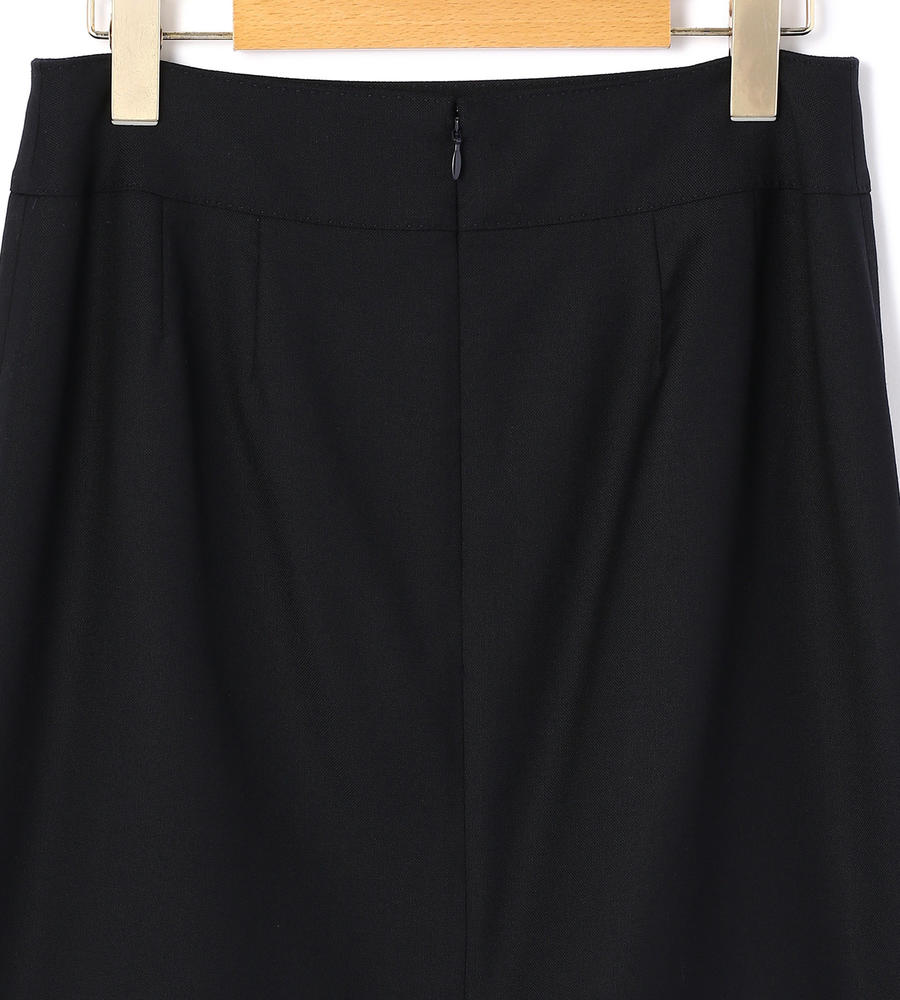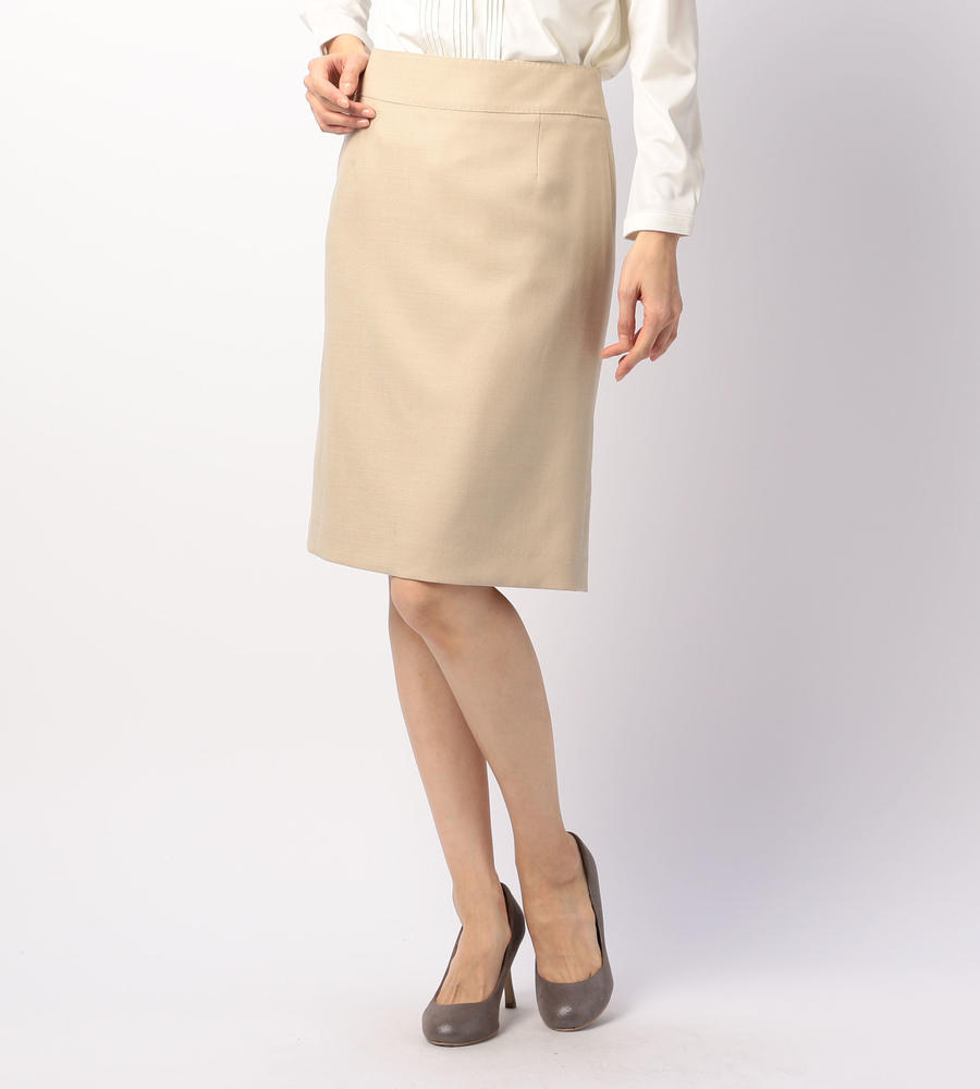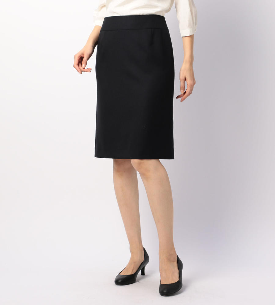 落ち着きを感じさせるシックなカラーでデザインしたミディ丈スカート。裾に向かって緩やかに広がりをもたせた美しいシルエットが都会的な女性らしい上品な佇まいを演出します。シルクウールにストレッチ素材をブレンドし、後ろ裾にスリットを施しているため、足捌きもスムーズに行えます。